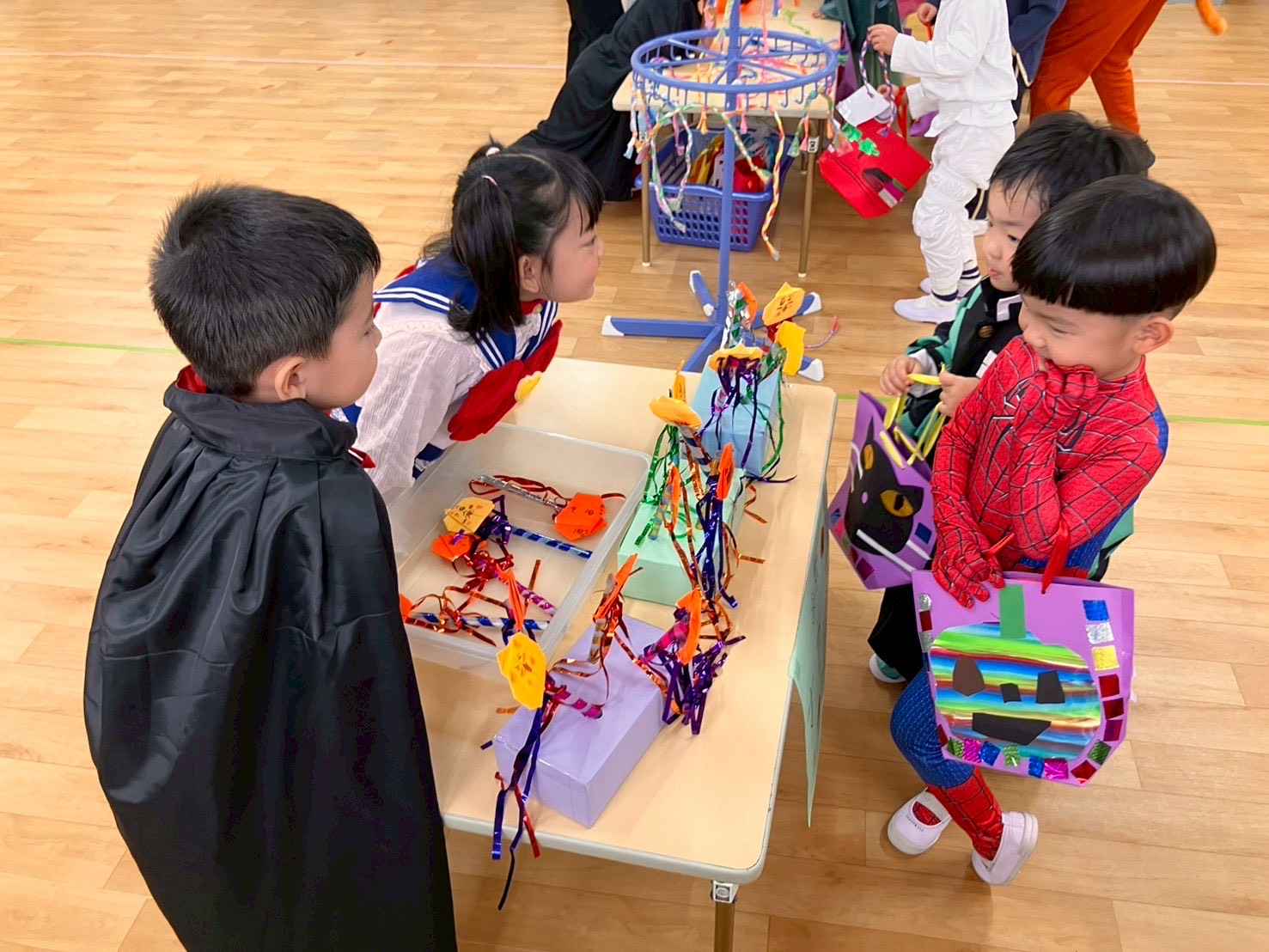 31日がハロウィンということで、ハロウィンパーティーでは各クラスで子どもたちが作ったものを使って、買い物ごっこを楽しみました。