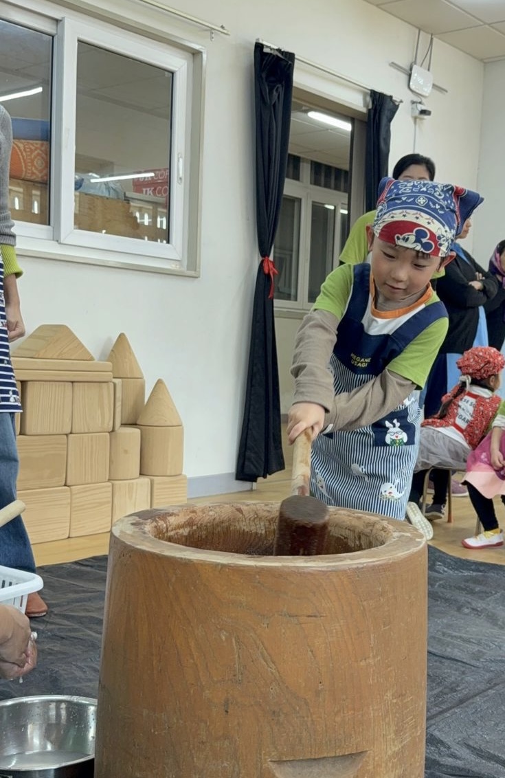 『もちつき体験』は、保護者ボランティアの皆様にお手伝いをしていただきました。おかげさまで、子どもたちも大変貴重な経験ができたと思います。 ありがとうございました!!